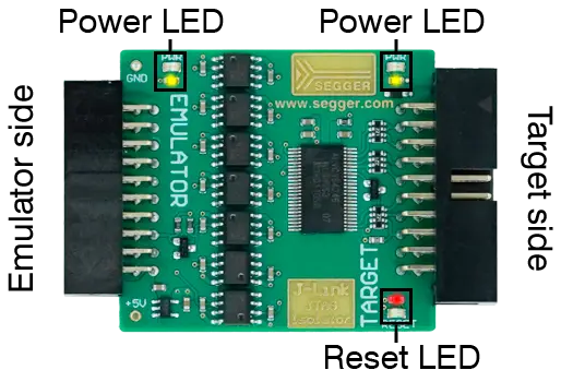 - Green LED indicating power on the emulator side