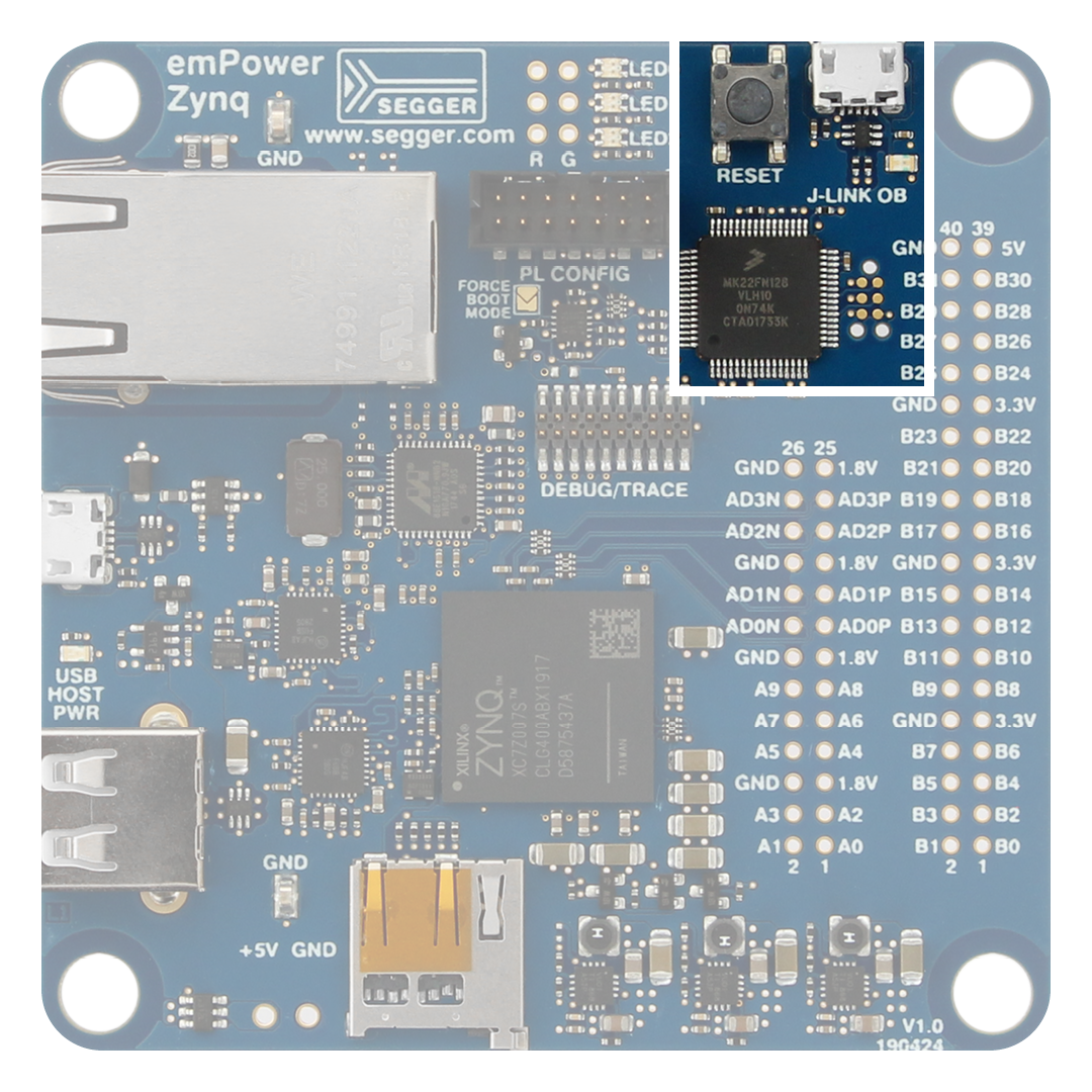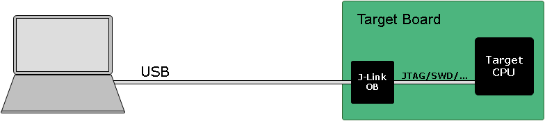 The J-Link OB (stands for: on-board) is essentially a microcontroller-based, single-chip J-Link that goes right on the evaluation board. It enhances any target board design with standard features, such as debug support, download into Flash memory and VCOM, without adding extra cost.