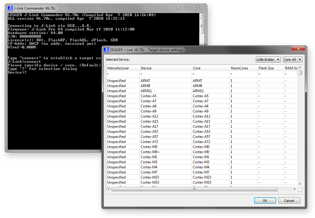 "Hidden devices" not yet released, can be made available, but not visible within J-Link software or supported devices list. Take advantage of the complete J-Link debug hardware and software functionality available before official product release. This allows for advance development and peace-of-mind, having a tested debug ecosystem going into your product launch.