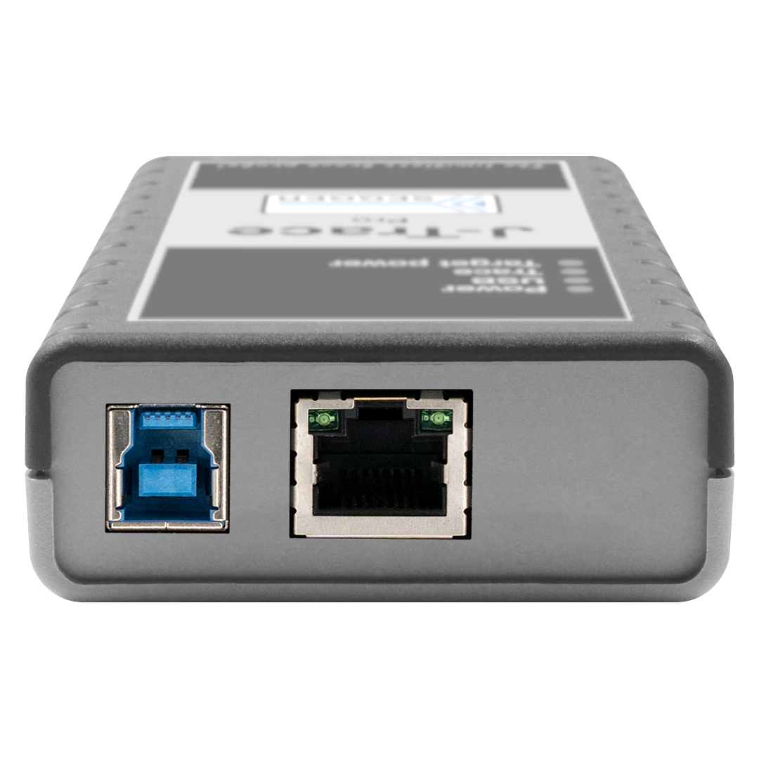 J-Trace PRO offers multi-platform support (Windows, macOS, Linux), up to 4 MB/s download speed, and comes with Ethernet interfaces. It ships with every feature enabled, including Unlimited Flash Breakpoints and real-time analysis with the Ozone debugger and performance analyzer, at no additional cost.