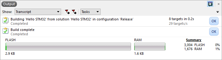 Embedded Studio builds the project using its toolchain (GCC). If the project does not build out-of-the-box refer to the next section Migration guide to check what might need to be changed.