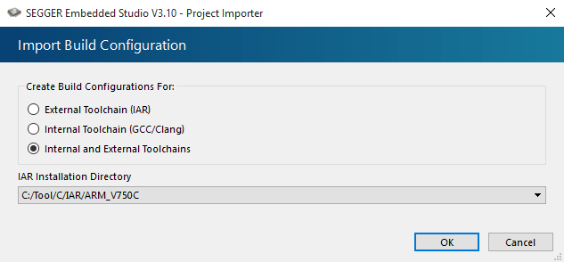 - Internal Toolchain imports the project and sets the configuration for the Embedded Studio toolchain.