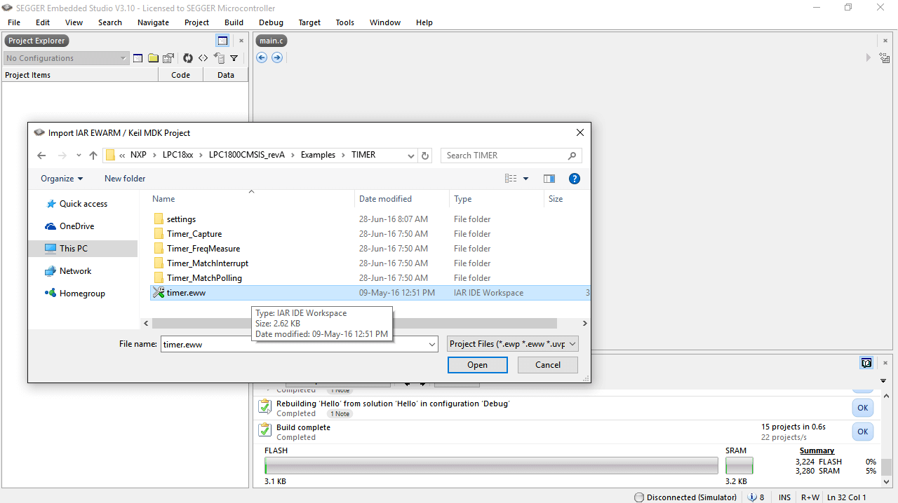 Quick start guide: Existing IAR Embedded Workbench and Keil uVision projects can easily be imported with Embedded Studio.
