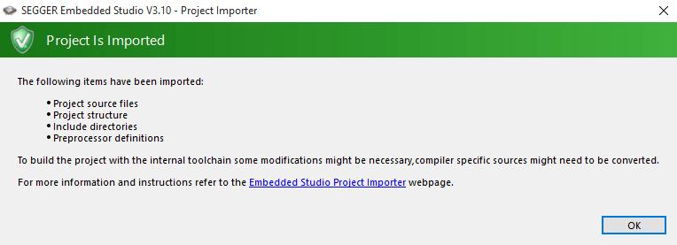The following section lists the most common changes which are required to migrate a project to Embedded Studio. If you are missing any instructions or have trouble importing your project to Embedded Studio, contact us at info@segger.com.