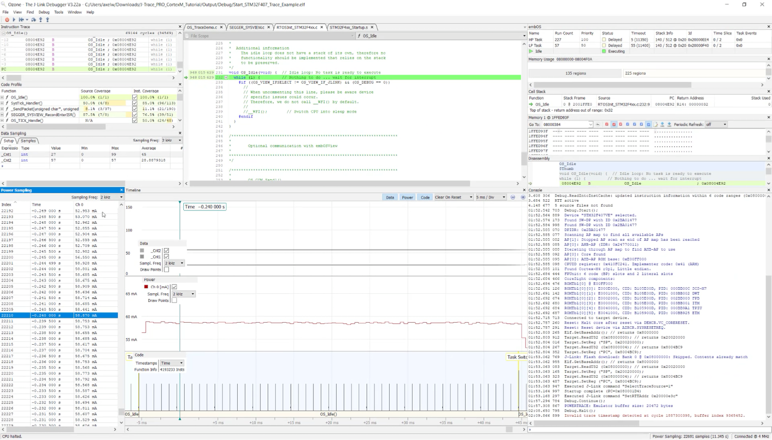 Ozone features more than plain debugging. With the extensive features of J-Link and J-Trace, it can be used for a full performance analysis of your target system.