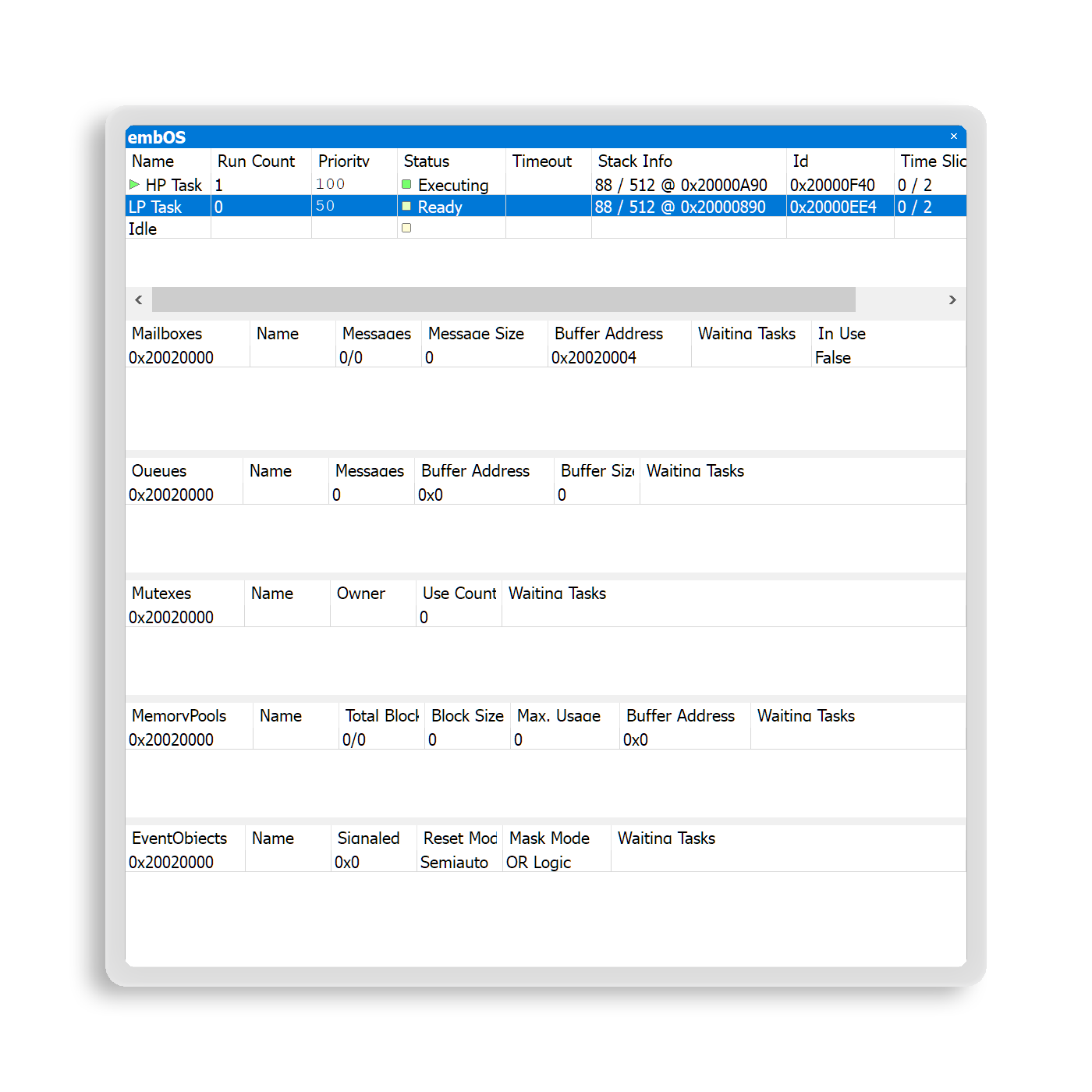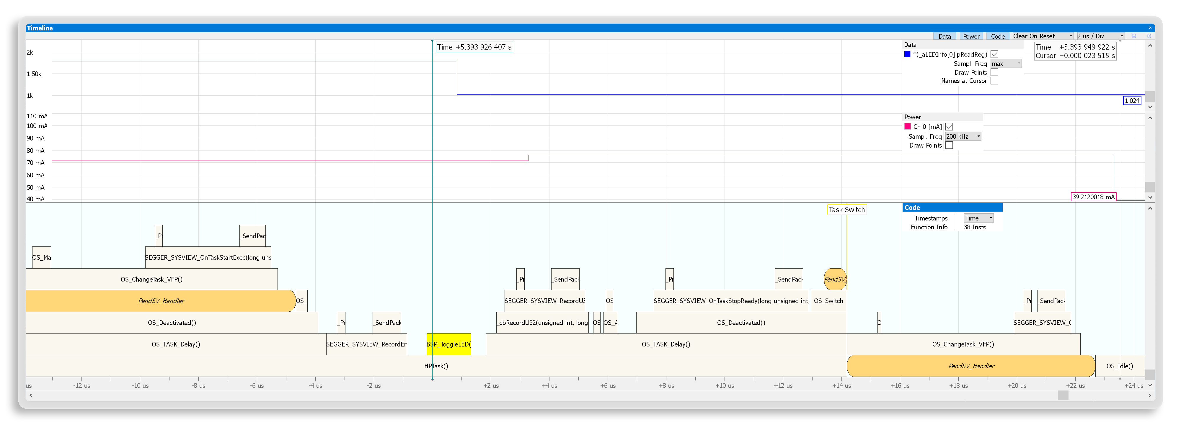 Ozone offers debug tools designed to address the growing complexity of modern embedded systems. To gain better insight into the behavior of an RTOS and middleware, Ozone includes RTOS plug-ins and a SmartView interface for middleware.