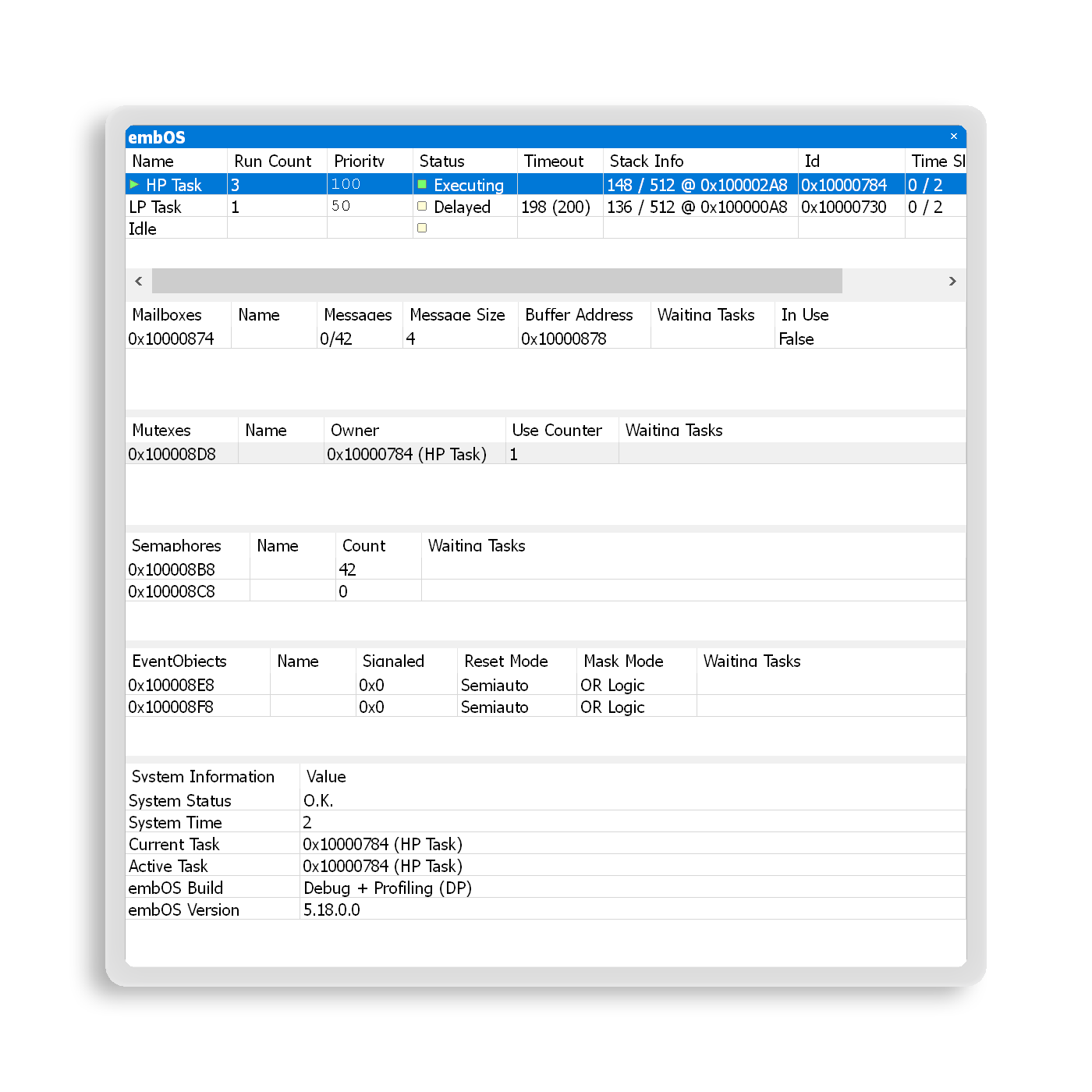 Ozone offers debug tools designed to address the growing complexity of modern embedded systems. To enable users to gain improved insight into the behavior of an RTOS or middleware, Ozone includes RTOS plug-ins and a SmartView interface for middleware.