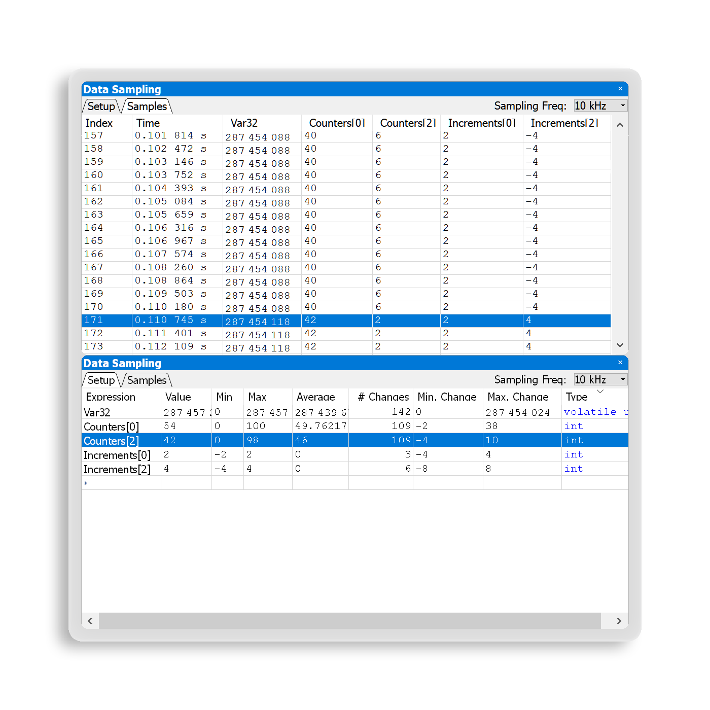 With a J-Link, Ozone can use High-Speed Sampling technology to directly read out target-system symbols with no overhead and at time resolutions down to 100 µs.