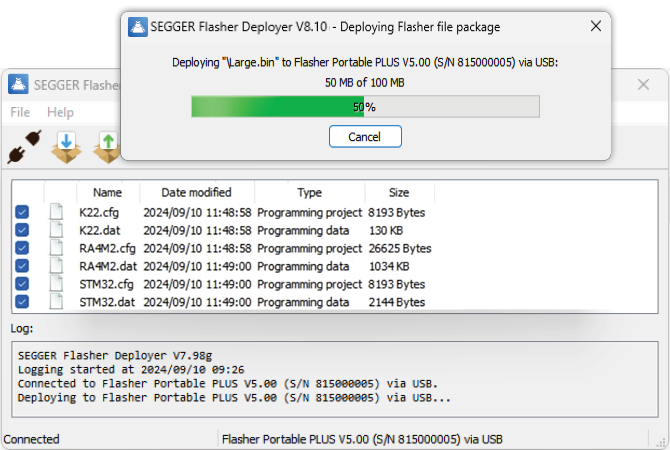 The Flasher Deployer simplifies the process of deploying and managing firmware. This makes it easy to replicate an existing, working setup for distribution. Automation is possible via a command line control that can be seamlessly integrated into existing automated production processes. This saves users from repetitive work, minimizes the risk of errors, and accelerates deployments.