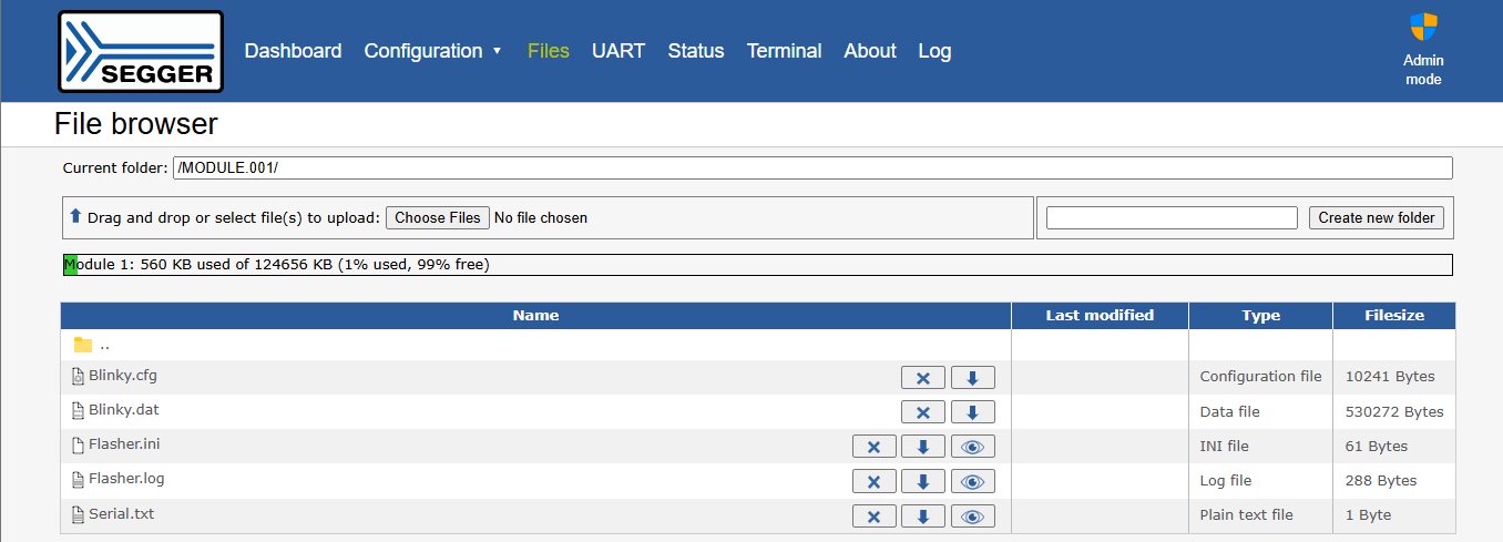 Using the emFTP server enables easy upload of configuration files and firmware images. By connecting to the emFTP server using an FTP client of choice, files can be transferred between client and Flasher.