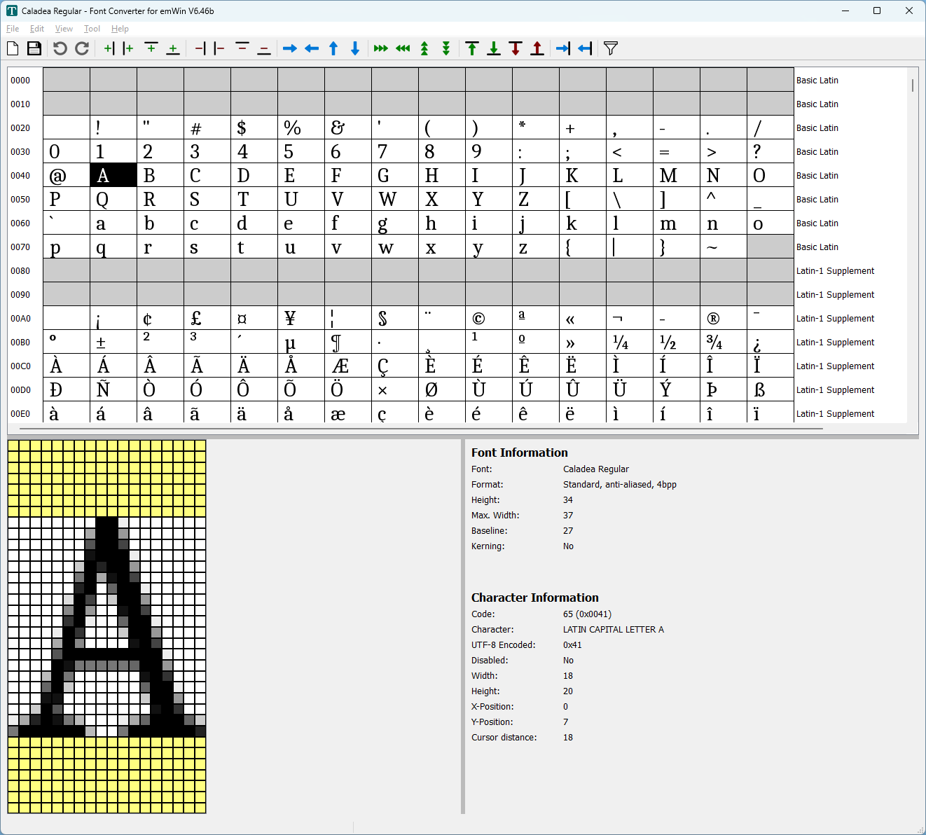 The Font Converter allows convenient converting of any installed font of the host system into an emWin font which can be easily integrated into emWin based applications. That could be done by creating C files, which could be easily compiled and linked with the target project or any binary format supported by emWin.